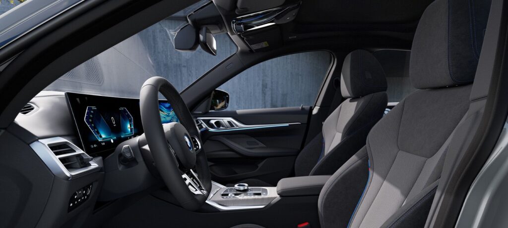 En el interior, el BMW i4 ofrece una experiencia enfocada en el confort y la tecnología avanzada. Su cabina premium integra una pantalla curva de gran formato, instrumental digital y el sistema BMW iDrive, creando un entorno intuitivo y completamente conectado. Los asientos deportivos, el excelente aislamiento acústico y la calidad de los materiales acompañan cada recorrido con comodidad y silencio. Todo está pensado para disfrutar recorridos largos con una sensación de control, sofisticación y deportividad eléctrica.